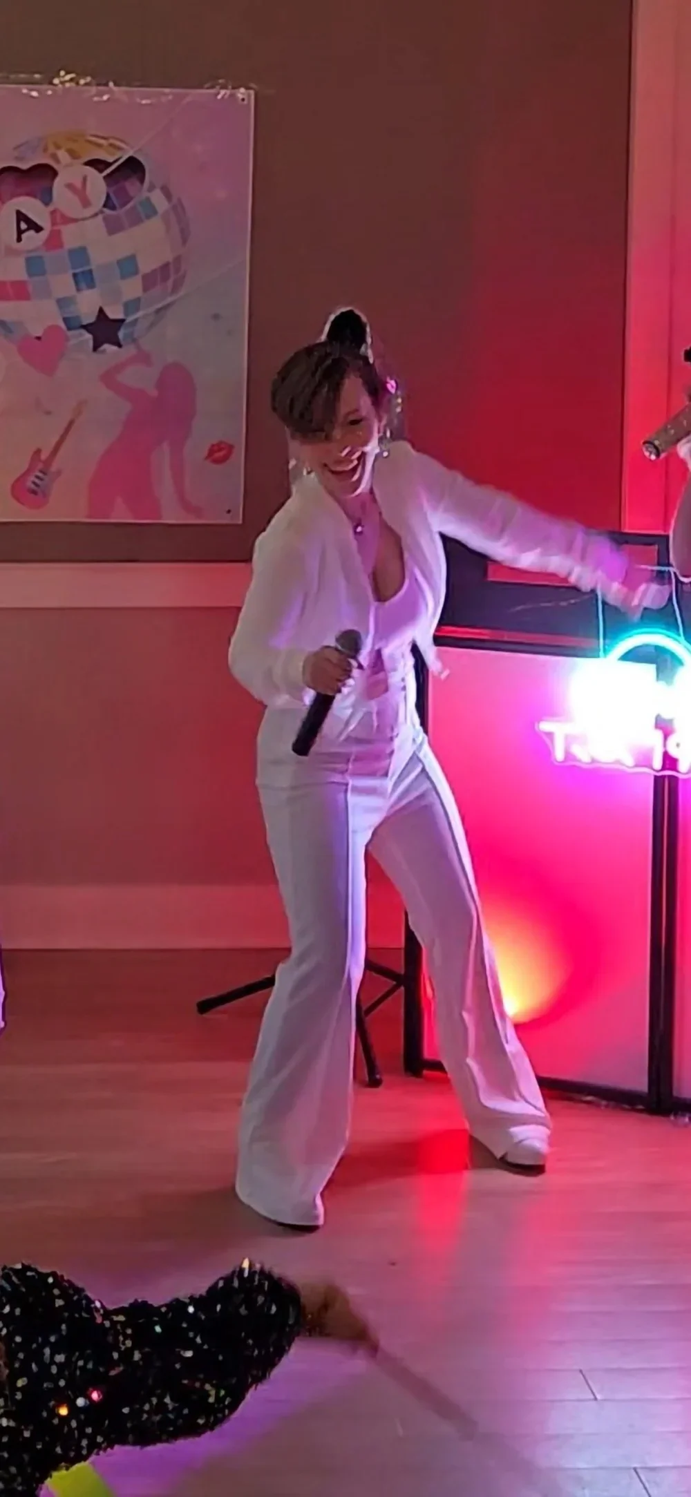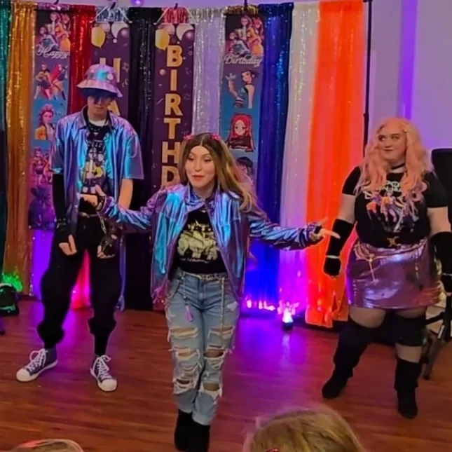 Add a high-energy Party Host who serves as backup singer and dancer, helping lead choreography, hype the crowd, and make sure every guest feels like part of the show.